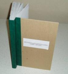 Используемый материал: картон толщиной от 0,8 мм., бумвинил (светлых и тёмных тонов). Архивный переплет осуществляется картоном толщиной 1,4мм., 2 мм.